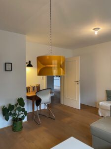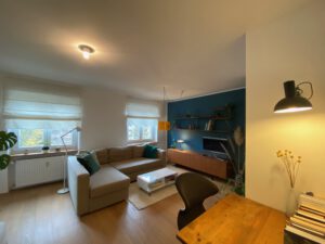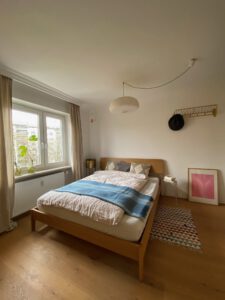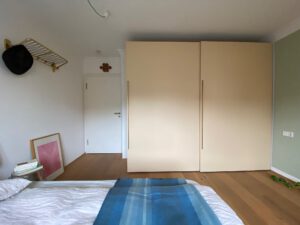 Bitte beachten: die Wohnung verfügt nicht mehr über traditionelles Kabelfernsehen sondern bietet mit AppleTV aktuellstes Internet-TV an. Ebenfalls im Wohnzimmer befindet sich eine kleine Arbeitsecke. WiFi ist in der gesamten Wohnung verfügbar. Im Schlafzimmer befindet sich im ebenfalls maßgefertigten Kleiderschrank genügend Stauraum für Ihre Kleidung. Eine Waschmaschine steht zur Nutzung bereit.