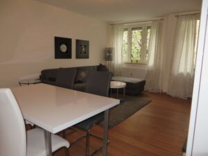 Hochwertig möbliertes und familienfreundliches Wohnen auf Zeit nahe München Zentrum. Die vollständig möblierte 2 1/2 Zimmer mit Balkon liegt unweit des Leonrodplatzes, gegenüber dem Goethe Institut. Das Anwesen ist durch einen Grünsteifen von der Dachauer Straße getrennt. Die Wohnung liegt im 1.OG einer gepflegten Anlage. Die Raumaufteilung ist wiefolgt: Diele, Wohnzimmer mit Süd-Balkon zum Innenhof, Schlafzimmer, 1/2 Zimmer, Küche, Bad mit Dusche.